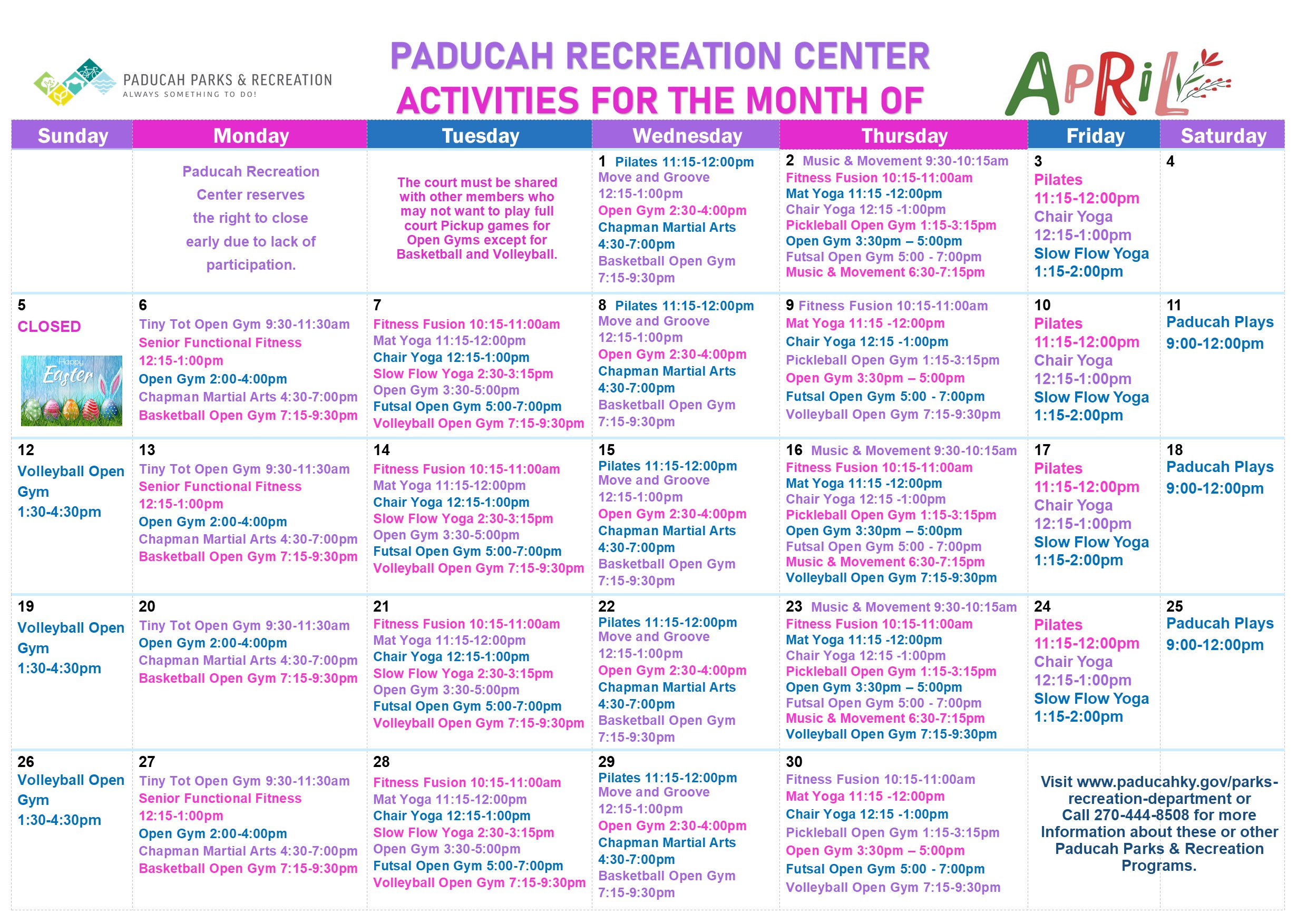 - All patrons are required to follow facility rules. City of Paducah reserved the ight to remove any and all persons who do not adhere to facility rules.